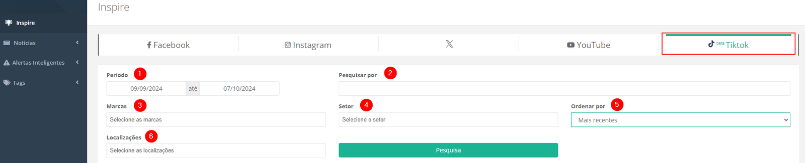 Essa integração com o TikTok no Inspire, proporciona uma visão mais ampla e estratégica do comportamento digital, facilitando o acompanhamento do desempenho das suas marcas e permitindo a identificação de oportunidades de crescimento e tendências emergentes. Agora, você poderá monitorar não apenas métricas de engajamento, mas também identificar padrões de consumo, campanhas virais e novos influenciadores em ascensão. Com esses insights valiosos, será possível otimizar suas estratégias de marketing com ainda mais precisão, garantindo que sua marca esteja alinhada às tendências digitais mais atuais.